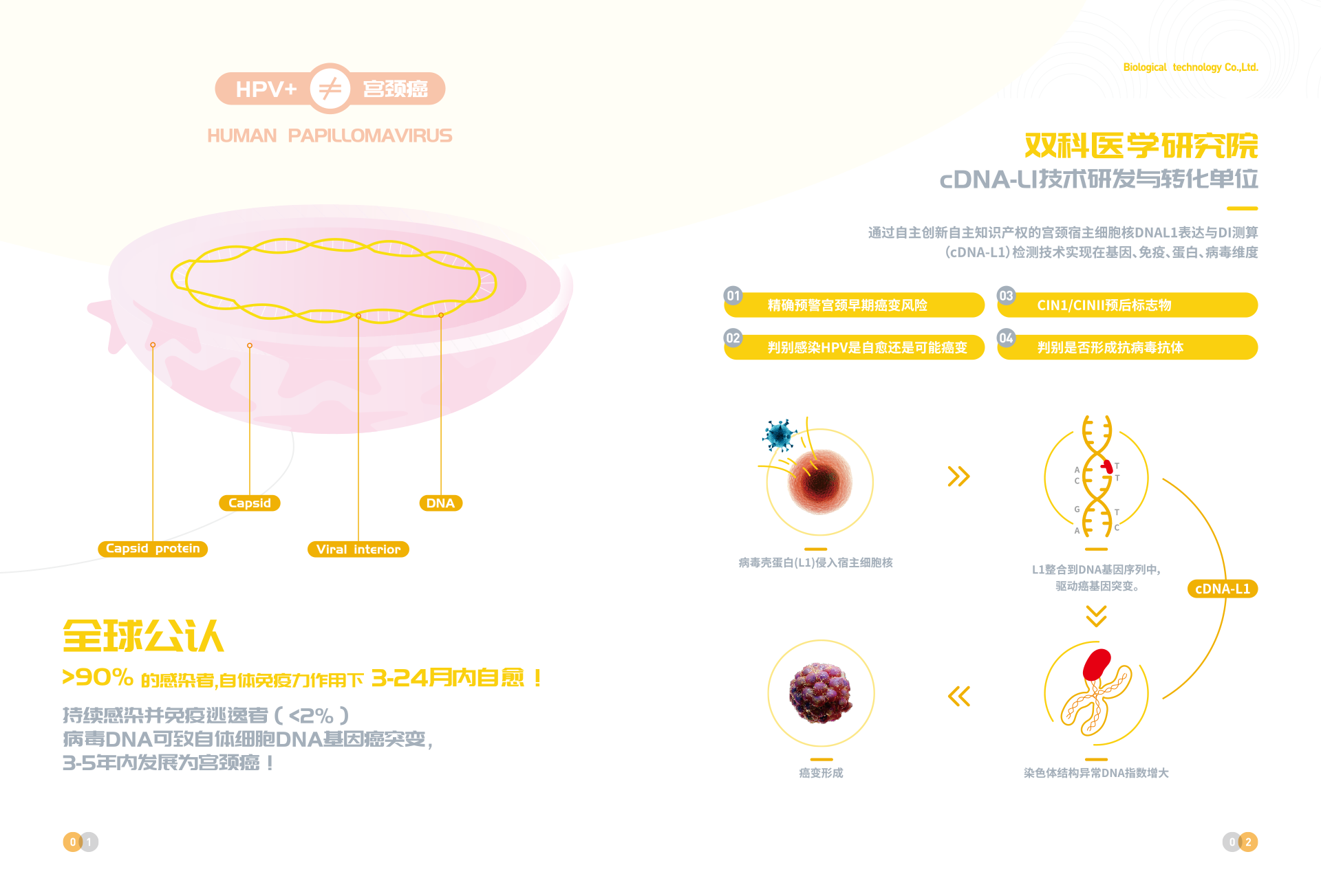 深圳市雙科生物科技有限公司創立于2012年12月12日,是按照國家“十二五”、“十三五”科技創新規劃、《中國防治慢性病中長期規劃(2017-2025年)》與《“健康中國2030”規劃綱要》等政策要求,以“健康中國所系,呵護生命相托”為公司使命,在“十二五”及“十三五”期間公司先后完成技術體系建模與試運行、服務體系構建與運行、腫瘤綜合防控體系建立與實施,在高新生物技術領域,形成了具有完全自主創新與獨立知識產權的常見腫瘤液態活檢技術、體細胞技術、醫學AI技術、宮頸癌預警cDNA-L1技術、腦卒中早期預警MTHFR/MTRR技術 、 N-MDT技術、“防-控`-保”技術等和服務體系。